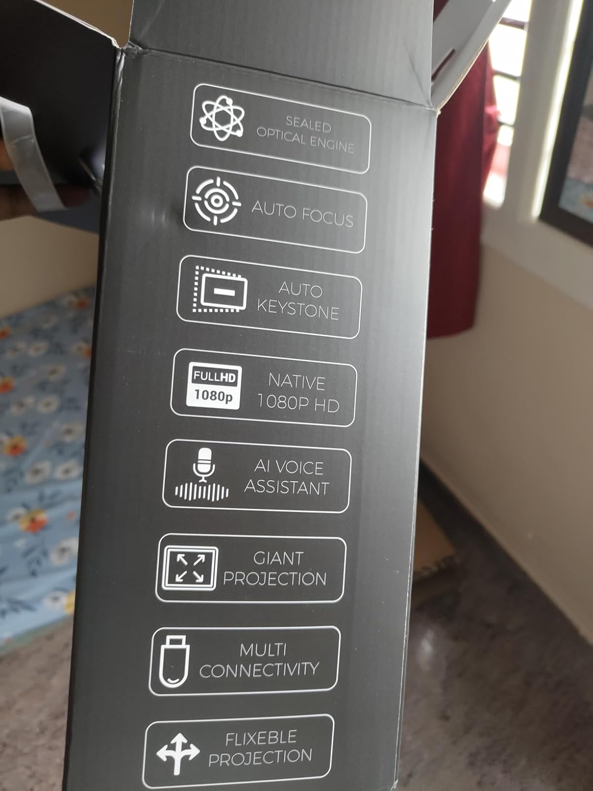 The picture quality is crisp, bright, and vibrant, even in moderately lit rooms. The Full HD native resolution makes movies and sports look stunning, and the 100-inch screen projection completely transforms my room into a mini home theatre.