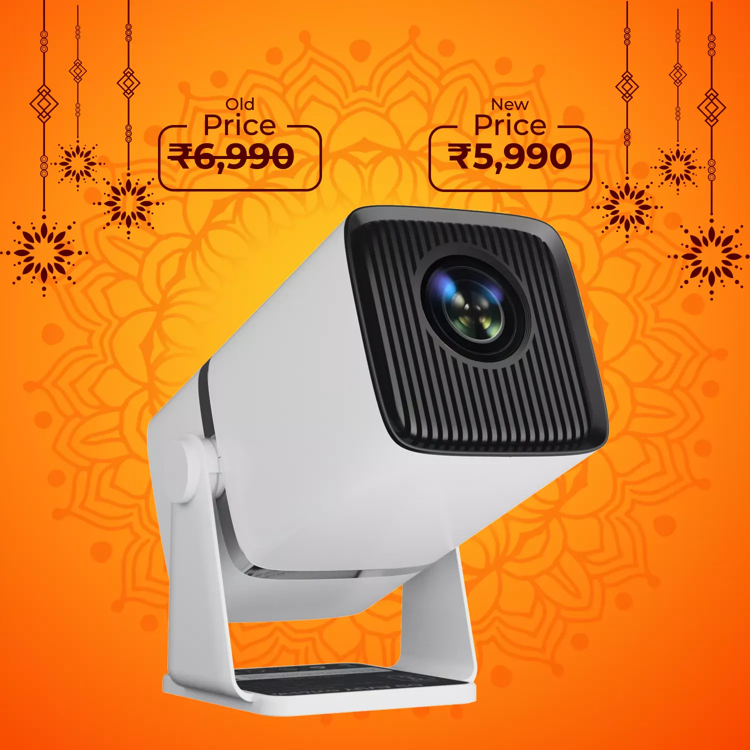The Yuva Go Projector is a compact, portable powerhouse designed for entertainment anywhere. Featuring 180° rotation, manual focus, auto keystone correction, and a bright 6900-lumen display, it delivers clear, vibrant visuals in any setting. Powered by Android 13 with Wi-Fi 6 and Bluetooth 5.2, it offers seamless streaming, app access, and wireless audio connectivity - making it perfect for movies, presentations, and on-the-go fun.